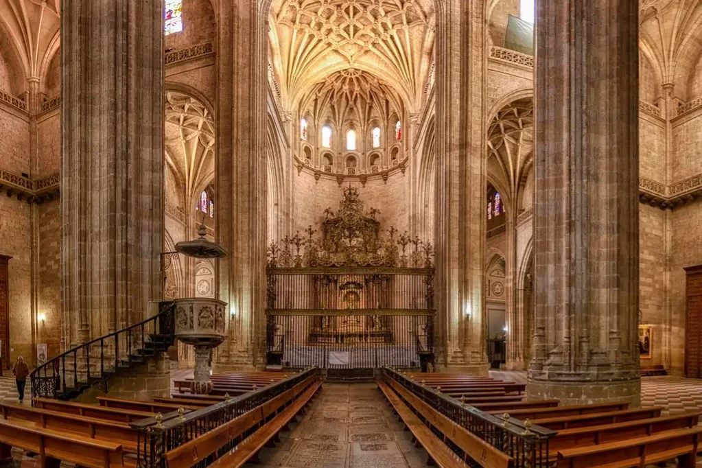 Se construyó tras la Guerra de las Comunidades, cuando la ciudad decidió levantar un nuevo templo lejos del Alcázar para evitar que volviera a quedar atrapado en conflictos militares. Durante décadas, maestros canteros, escultores y artesanos trabajaron en sus bóvedas, capillas y vidrieras, creando un edificio que parece más ligero que la piedra de la que está hecho. Dentro, la luz entra como si la catedral respirara, iluminando retablos dorados, capillas silenciosas y un coro que guarda siglos de historia segoviana.